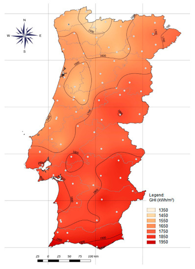 41. Cavaco, A.; Silva, H.; Canhoto, P.; Neves, S.; Neto, J.; Collares Pereira, M. Global Solar Radiation in Portugal and Its Variability, Monthly and Yearly; Institute of Earth Sciences: Evora, Portugal, 2016. [Google Scholar]