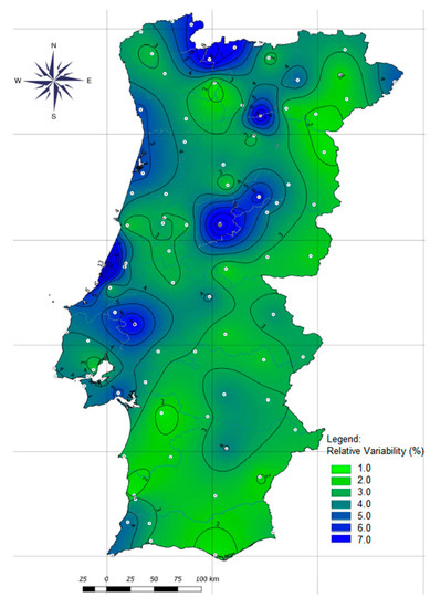 Figure 3. Annual variability of GHI values (%) in Portugal. Data from [41].