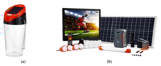 - Global Off-Grid Lighting Association. Global Off-Grid Solar Market Report—Semi-Annual Sales and Impact Data; Technical Report; GOGLA, Lighting Global and Berenschot: Utrecht, The Netherlands, 2018. [Google Scholar]