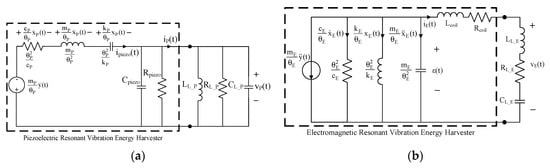 (a) Equivalent electric circuit of P-RVEHs. (b) Equivalent electric circuit of E-RVEH.