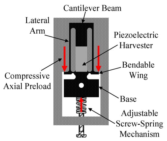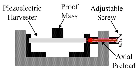 - Niri, E.D.; Salamone, S. A passively tunable mechanism for a dual bimorph energy harvester with variable tip stiffness and axial load. Smart Mater. Struct. 2012, 21, 125025. [Google Scholar] [CrossRef]