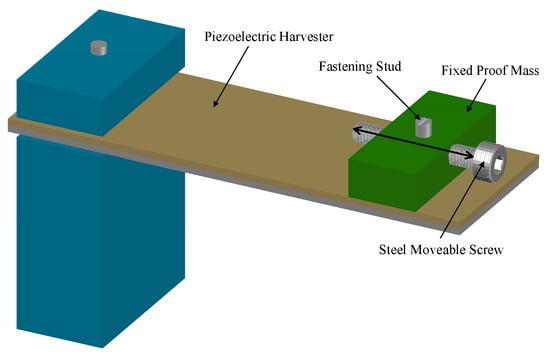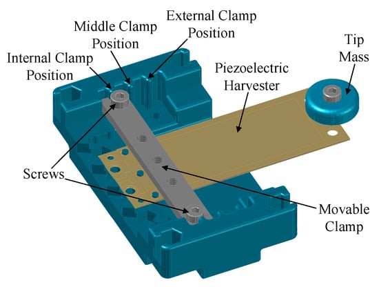 - Heit, J.; Christensen, D.; Roundy, S. A vibration energy harvesting structure, tunable over a wide frequency range using minimal actuation. In Proceedings of the ASME 2013 Conference on Smart Materials, Adaptive Structures and Intelligent Systems, Snowbird, UT, USA, 16–18 September 2013; Volume 2: Mechanics and Behavior of Active Materials; Structural Health Monitoring; Bioinspired Smart Materials and Systems; Energy Harvesting. American Society of Mechanical Engineers: New York, NY, USA, 2013; Volume 2. [Google Scholar]