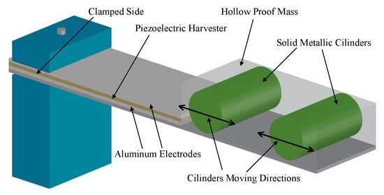- Alevras, P.; Theodossiades, S. Vibration energy harvester for variable speed rotor applications using passively self-tuned beams. J. Sound Vib. 2019, 444, 176–196. [Google Scholar] [CrossRef]
