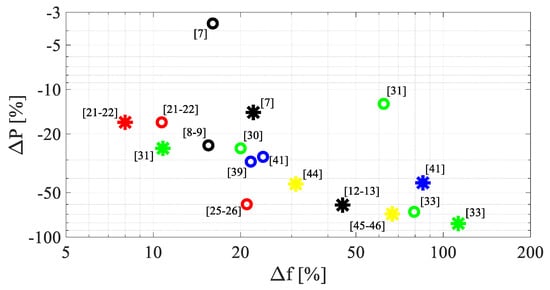 Taking into account the previous considerations it is clear that, in general, for the optimal exploitation of a RVEH it is necessary to apply jointly both a MTT and an ETT at the same time as shown in Figure 6c. In this case, as desired, the perfect horizontal translation of the maximum extractable power curve is obtained. In other words, the color curves in Figure 6c represent perfect horizontal translations, at different resonance frequencies, of the black dashed curve of Figure 6a. The envelope of the maximums of such color curves (dashed black curve in Figure 6c) represents the maximum power PMTT-ETT(fvib) ≡ Pmax ≡ PL(RLopt(fvib),XLopt(fvib),fvib) that can be extracted, frequency by frequency, with the joint application of both a MTT and an ETT.