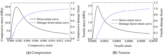 The compressive stress level and the stress level range of concrete can be calculated by Equations (8)–(10):