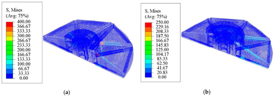 Table 6, from which it can be seen that the compressive stress of concrete above the windward-side T-shaped plate was significantly increased under the valley value of fatigue loading and decreased under the peak value of fatigue loading. Therefore, the fatigue stress amplitude was reduced and the fatigue life of concrete above the windward-side T-shaped plate could be improved.