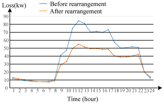 The objective function for phase rearrangement of transformers is to minimize the total line loss during the 24 intervals. The loss-minimizing problem can be formulated as: