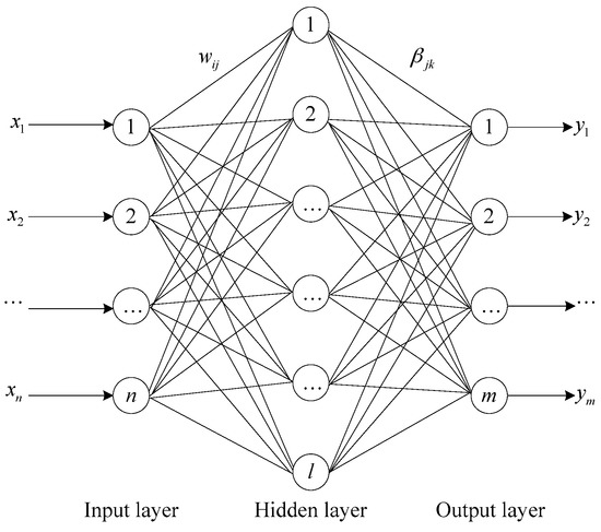 ELM is a simple efficient algorithm that does not require the tuning of parameters and exhibits extremely rapid learning speeds [64]. The network of an ELM training model is a single-hidden-layer feed-forward neural network structure (Figure 5).