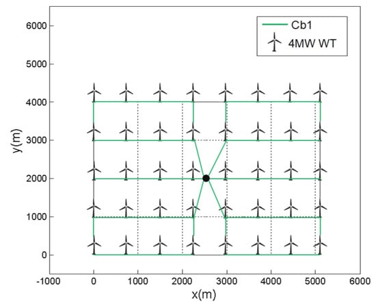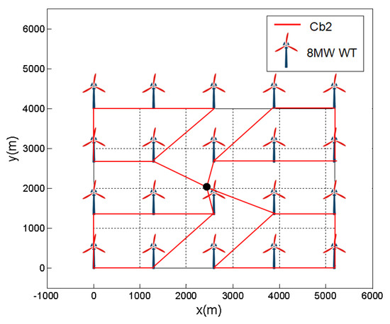 As pointed out in [8], the ring structure of the cable layout has higher reliability than the string structure because when one part of the cables fails in a ring, the ring is divided into two strings that can transport power separately. In this way, the operation of the whole OWF will not be affected immediately. On this account, the inner-circle/inner-array cable layout in this work is designed to have a ring structure.