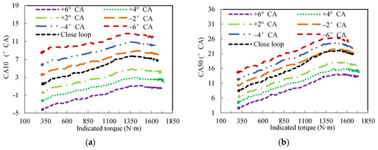 Effect of FSIT strategies on combustion performance: (a) CA10; (b) CA50.