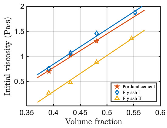 Using experimental data, Lapasin et al. [58] proposed an equation describing the effects of specific surface and volume concentration of cement particles on the dynamicf viscosities and and the yield stress :