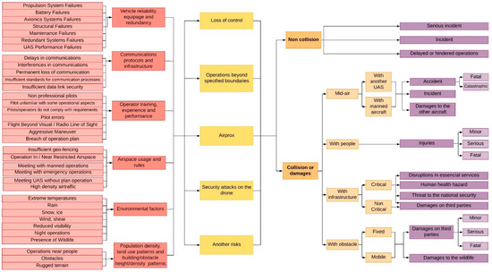 - Air collision: Collision between two unmanned aircraft or between unmanned and manned aircraft. The consequences are categorised according to ICAO Annex 19 [27].