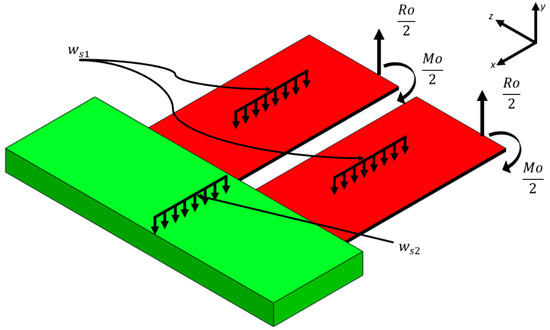 The deflection, ysj, into each one of the devices’ sections was obtained by substituting the bending moment functions, Ms1 and Ms2, into the Equations (10) and (11), respectively, and using the integration rules of the Macaulay’s functions. Furthermore, the boundary conditions (Equations (12) and (13)) were applied to find these deflections: