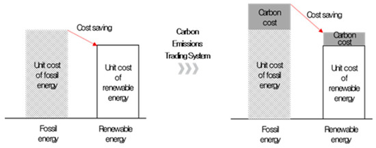 However, once carbon market is introduced, additional cost reduction by using renewable energy should be considered. In general, it is known that renewable energy does not generate carbon emission at all while fossil fuel energy emits large amounts of carbon during the combustion process. And carbon emission will incur costs which would be determined by the carbon market. Therefore, under the recent introduction of carbon markets, it is necessary to consider such costs incurred by carbon emission in evaluating the economic values of renewable energy R&D. Figure 1 illustrates aforementioned cost reduction structure of renewable energy after the introduction of carbon markets.