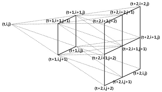 In our real option model, which considers both the uncertainty of fossil energy costs and the uncertainty of carbon emission rights prices simultaneously, binomial lattices become three-dimensional as shown by Figure 2.