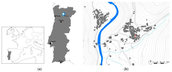 Case study’s location. (a) country context; (b) Granja do Tedo’s urban layout.