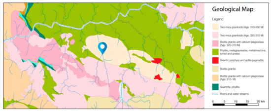 - LNEG. Geological Map of Portugal at 1:1 000 000—Geoportal do Laboratório Nacional de Energia e Geologia. Available online: http://geoportal.lneg.pt/geoportal/mapas/index.html (accessed on 14 June 2018).