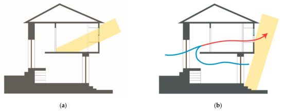 In this context, some authors, like Ascione, et al. [22] defend that the building orientation and its passive design can positively affect the energy and environmental performance of buildings. For instance, glazed balconies act as a sunspace (Figure 1) and are a vernacular design solution that can contribute to the thermal performance of buildings during the heating season, since the sunspace heats the adjacent rooms, not compromising the thermal behavior of the building during summer [23]. This technique also has great potential to be used in contemporary buildings to improve energy efficiency, as shown by the case of the rehabilitation of the residential complex of Dornbirn, in Austria. The option of introducing this type of solution in the south-facing facades has increased the floor area of the dwellings and significantly reduced the heating energy bill [24]. The operation of these balconies as a buffer space allows the simultaneous capture and trapping of solar gains and reduction of heat losses. By being physically separated from the interior spaces of the dwellings, in situations where heat gain is undesirable, the balcony space can act as a shading device and promotes natural ventilation [24].