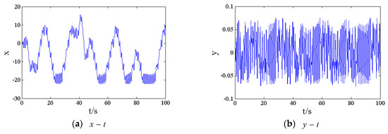 The time-domain of system (18) is shown in Figure 3. We can see that each state variable is unstable and in nonlinear vibration. Therefore, it is necessary to design controllers to ensure the stable operation of an HGS (18).