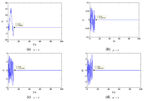 The parameters of the controller are selected as , , and the initial value of the system state variable is