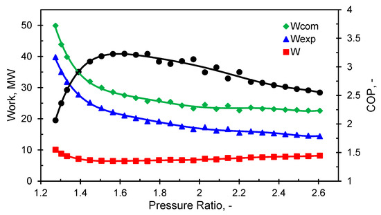 The identification of the HP behaviour and best performance is performed by maximising the COP value of the HP under consideration, using the model set up in Petro-SIM [27]. The specifications of the temperatures and duties are varied within ranges expected from the considered process type, and the behaviour of the system is investigated. The procedure then provides the best HP—process configuration with the optimal values of the pressures after the compressor and the expander of the selected HP.