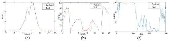 PV output per hour (a), WT output per hour (b), WT Prediction and actual output of 1500 data (c).