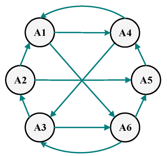 In this section, several simulations under a text system with six DG units—A1, A2 … A6 are used to verify the accuracy of the proposed method. The communication topology is shown in Figure 7. Some parameters of DGs are listed in Table 1. The simulation results are obtained under MATLAB environment.