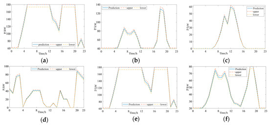 Basing on the predicted outputs of each DG, the optimal power output can be gained by redistribution through the method proposed in Section 3.2. The results are shown in Figure 13 and Figure 14. As shown in Figure 13, when the prediction error is considered, the optimization results are turned to be a range of interval estimation, which is used to provide advice for day-ahead scheduling policies.