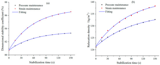 The fitting results of dimensional stability coefficient and relaxation density under different stabilization processes.