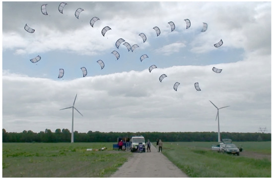 Composite photo of a crosswind figure-of-eight maneuver ( s) of a tube kite with 25 m wing surface area [9].