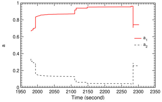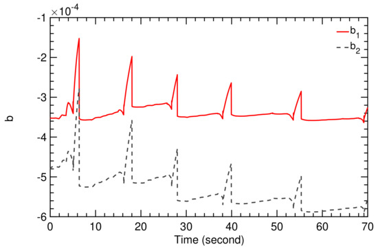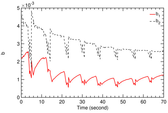 The coefficients and vary with time because of the change in the system dynamics. The kite is also exposed to a time-varying apparent wind speed that is not available in real time during flight. Substituting Equations (23) and (24) into Equation (22), we obtain