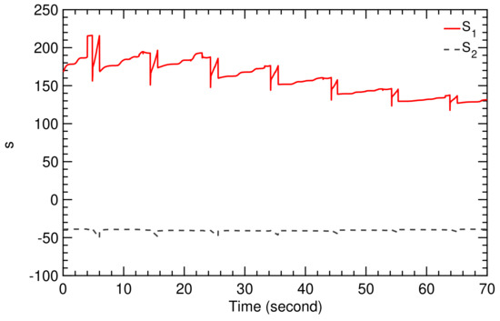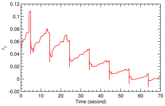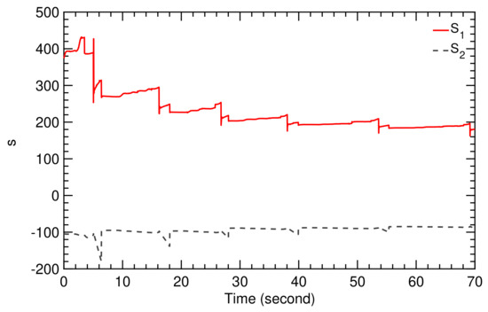 The sampling time used during the simulation was s. Thus, the chosen poles can be rewritten as