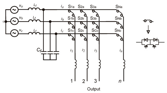 The article is organized as follows. In Section 2, the configuration and analytical model of the three-to-n-phase MC are introduced. Section 3 consists of a description of proposed modulation method as applied to three-to-three-phase, three-to-six-phase and three-to-nine-phase MC. The method of CMV elimination and the method of adjusting the input displacement angle are also presented in Section 3. Results of simulation and measurements are shown in the Section 4 and Section 5, respectively. The summary in Section 6 concludes the article.