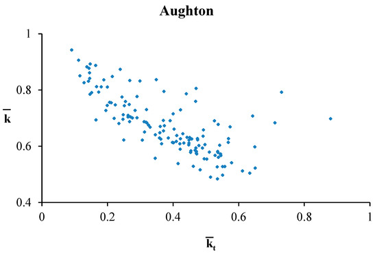 Monthly-averaged hourly kt vs. k for Aughton.