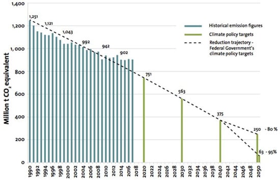 Given that industrialized countries produced more of and benefited more from emissions in the past, they have an ethical responsibility to achieve this transition more rapidly than the world as a whole. The EU and Germany have set themselves ambitious climate targets: annual GHG emissions are to fall by 80–95% by 2050 compared with 1990 levels. Interim targets have been set for 2020 and 2030. Targets must be seen in the light of the results of the climate conference in Paris. At the end of 2015, the global community agreed to the goal of a net-zero emissions global economy between 2050 and 2100. Large parts of the transport and heating sectors must be electrified (sector coupling) to achieve national climate targets. This is because electricity from renewable energies plays a decisive role in decarbonizing these areas. Battery technologies and water electrolysis have the potential to become key elements in coupling the electricity, transport, heating, and chemical sectors in a future sustainable energy system [].