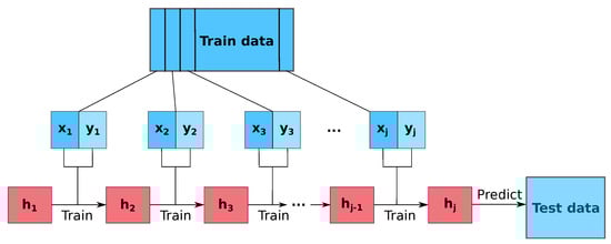 - Error estimation: we have used an interleaved test-then-train scheme [], where each instance is firstly used for testing the model before it is used for training, and from this, the error metric is incrementally updated. The model is thus always being tested on instances it has not yet seen