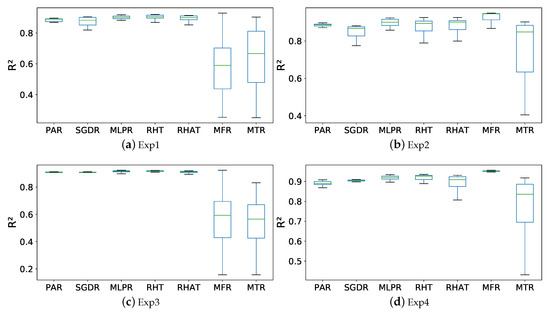 - Multi-Layer Perceptron Regressor (MLPR): Multi-layer Perceptron (MLP) [] learns a non-linear function approximator for either classification or regression. MLPR uses a MLP that trains using backpropagation with no activation function in the output layer, which can also be seen as using the identity function as activation function. It uses the square error as the loss function, and the output is a set of real values