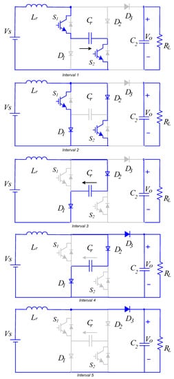 An improved circuit of a DC-DC power converter was proposed in [16]. The problem in this power electronics circuit, shown in Figure 1e, is that the auxiliary switch is turned-off under the hard-switching condition. However, the used auxiliary switch in the chopper-fed DC-DC circuit, shown in Figure 1e, can operate under the ZCS operation condition at turn-off transition by adding a simple resonance capacitor Cr.
