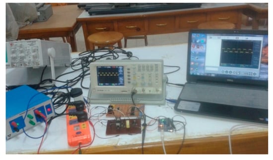 The studied soft-switching circuit was implemented as a prototype to demonstrate the operation principle. The input voltage is taken from the PV module, monocrystalline, 250 W, Vmp = 30.7 V, Imp (max. power current) 8.15. A 600 V-40 A IGBT was used as a switch operating at a switching frequency of 40 kHz, and the duty cycle was changed to prove the operation technique. The gate signal was produced utilizing the PIC microcontroller, and thereafter, the PWM signal was delivered to an optocoupler TLP250 to drive the IGBT switch. Optical isolation was the major advantage of using this driver compared to other drivers. TLP 250 was used to implement fast switching of power devices and reduce associated switching power losses. TLP 250 as an optocoupler provides a very high isolation voltage. It can easily be interfaced with a microcontroller. The circuit parameters are listed in Table 1.