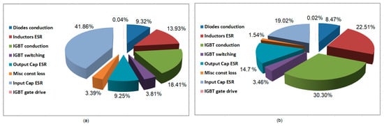 Breakdown losses. (a) Using half-load (Po = 250 W); and (b) Using full-load (Po = 500 W).
