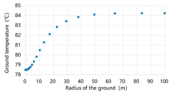Figure 6. The ground temperature distribution in radius direction at the bottom of DBHEs. - (6)