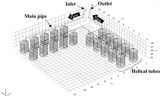- Fernández-Seara, J.; Piñeiro-Pontevedra, C.; Dopazo, J.A. On the performance of a vertical helical coil heat exchanger. Numerical model and experimental validation. Appl. Therm. Eng. 2014, 62, 680–689. [Google Scholar] [CrossRef]