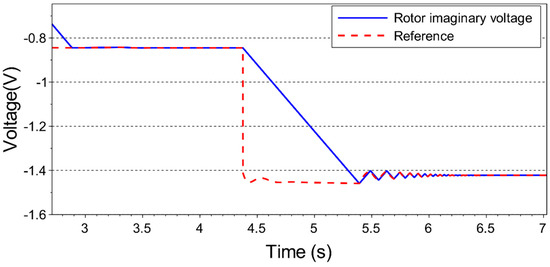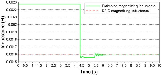 At 4.4 s, the proposed algorithm to correct the value of magnetizing inductance started. This algorithm rapidly converged to a value very close to the real one. The control variables were quickly corrected too, as shown in Figure 14, Figure 15 and Figure 16. Then, the rotor speed and the stator reactive power converged to its desired value, as shown in Figure 12 and Figure 13.