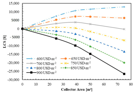 Effect of unit cost per m2 of the solar collector on the life-cycle saving.