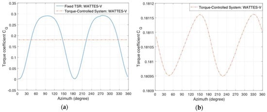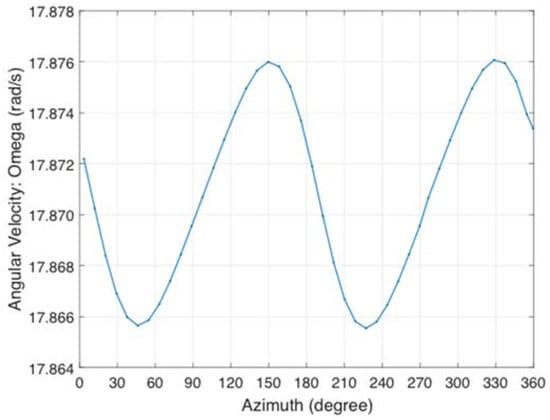Variation of angular velocity as a function of azimuthal angle in the torque-controlled system at TSR .