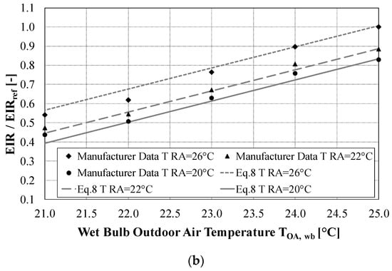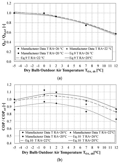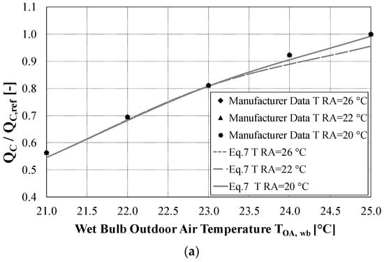 The governing equations of the “Curve Fit Method” for the cooling and heating mode are the following ones []: