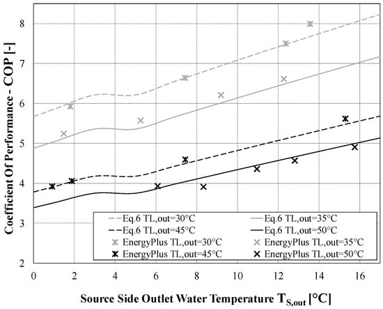 This paragraph presents the literature models selected in the present study in order to properly address the input in the Energy Plus program to simulate water-to-water and air-to-air heat pumps (Figure 1) at temperature varying COP. The detailed description provided (and the related validations) here are original contributions of the present study, since Energy Plus references do not fully specify how the code can properly manage the running mode when inverse machines performance have to be customized in terms of manufacturer information.