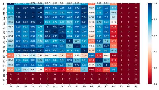 The maximum information coefficient ranges from 0 to 1, and the closer the value is to 1, the stronger the correlation between the two variables, and vice versa.