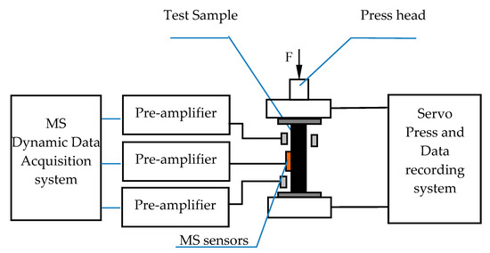 The diagram of the microseismic (MS) test system under uniaxial compression.
