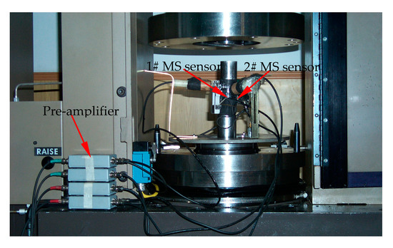 Coal and rock fracture experiment under uniaxial compression was completed in a state key laboratory of coal resources and safe mining of China University of Mining and Technology, Beijing. The loading system adopted the YAW series microcomputer control electro-hydraulic servo pressure testing machine system, which can synchronously and automatically record the stress, longitudinal strain, lateral strain, etc. MS sensors employed the SF1500MEMS capacitive accelerometer produced by COLIBRYS Company. MS sensors had the following parameters: the linear acceleration range was ±3 g, corresponding sensitivity was 1.2 V/g and frequency response range was from 0 to 1500 Hz, especially the frequency response range was from 0 to 5000 Hz for the weak signal. Preamplifier gain was 40 db. The cRIO-9074 embedded machine control and monitoring system produced by National Instruments Corporation (NI) was used to acquire data. NI cRIO-9074 had a 400 MHz industrial real-time processor and two 10/100 Mb/s Ethernet ports. The A/D converter was 16 bits. The data sample rate was 2500 per second.